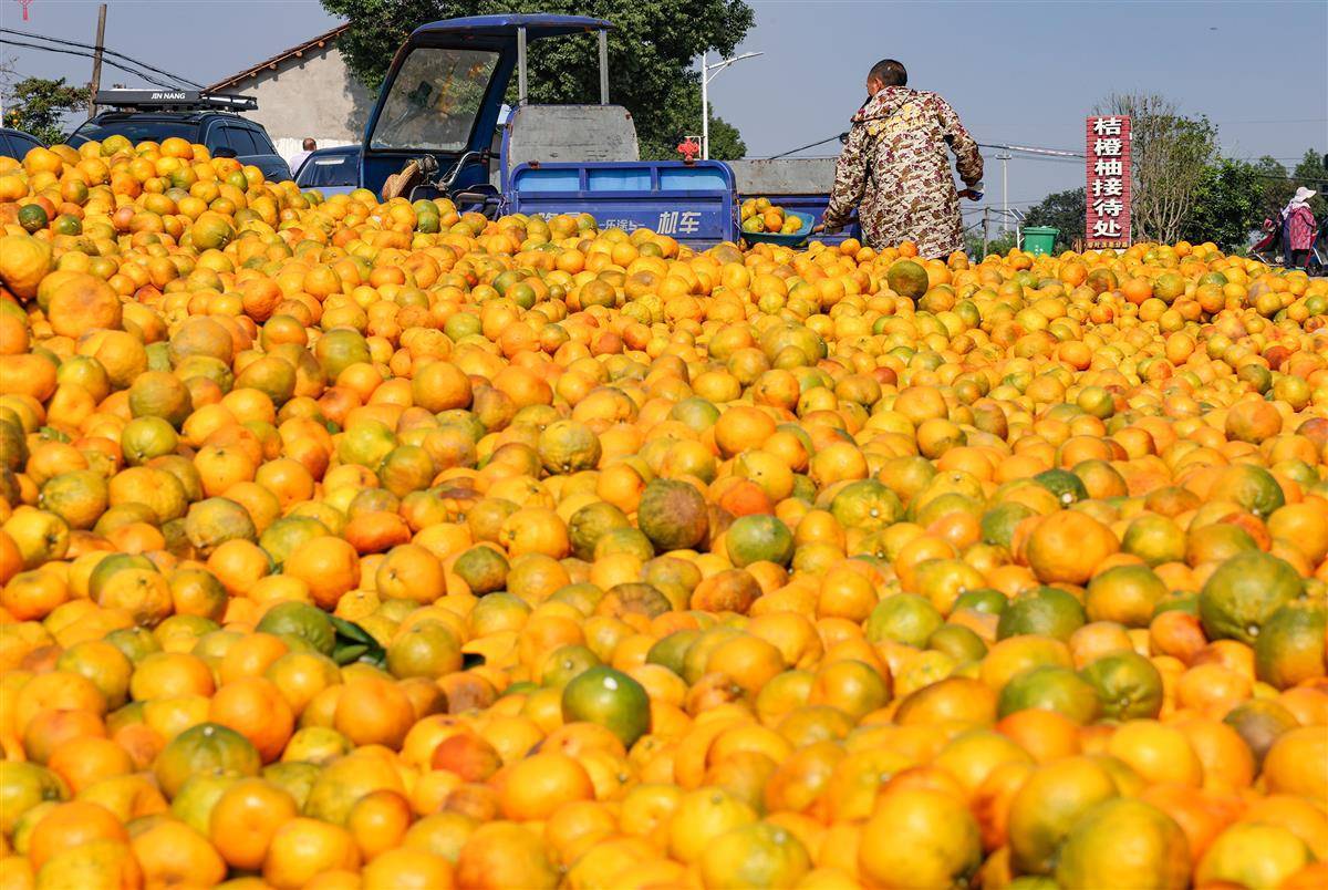 10月28日,公安县张庄铺市万亩柑橘园里随处可见果农们忙着采摘柑橘。一卡车的优质新鲜水果经过分拣、包装,运往全国18个州的38个市州。