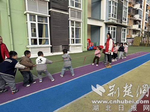 荆楚网(湖北日报)讯(通讯员宋芳芳)为丰富孩子们的户外生活,培养团队合作意识,让孩子们通过运动感受快乐和成长,襄阳刘集小王营村高新幼儿园“趣味运动周”于11月27日上午正式开幕,首届萌娃拔河比赛在园内热闹开始。 20余名孩子与老师、志愿者一起参加了一场孩子们的“力量大比拼”。